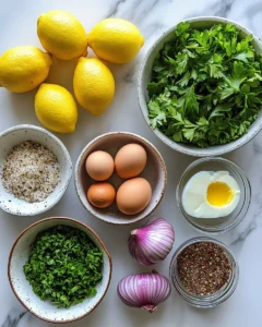 Add chopped eggs, lemon juice, parsley, onion, garlic, salt, pepper, paprika, and olive oil.