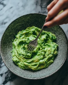 Cut the avocados in half, remove the pits, and scoop the flesh into a mixing bowl. Mash them with a fork until smooth but slightly chunky.