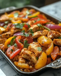 A comforting, oven-baked casserole inspired by classic chicken fajitas, packed with tender chicken, seasoned vegetables, fluffy rice, and plenty of melted cheese.