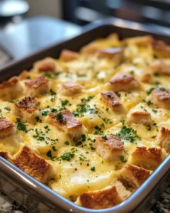 Its make-ahead capability makes hosting stress-free. You can assemble it the night before, then bake it while sipping coffee and enjoying the morning. The golden top, melty cheese, and creamy interior make it irresistible, ensuring guests will be asking for seconds.
