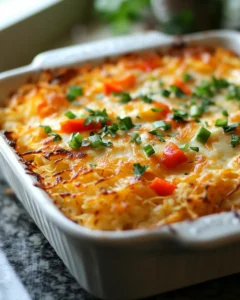 The Cheesy & Flavorful Peppers & Cheese Hashbrown Casserole is more than just a recipe—it’s a celebration of comfort, warmth, and delicious flavors. Its creamy, cheesy interior combined with the sweet crunch of bell peppers makes it a versatile dish suitable for brunch, family dinners, holidays, or even meal prep.