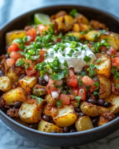 The inspiration for this recipe comes from two beloved favorites: the classic loaded baked potato and the bold, spiced flavors of taco night. By bringing these ideas together in one hearty bowl, you get something deeply satisfying yet endlessly customizable. Crispy roasted potatoes form the base, topped with seasoned vegetables, creamy sauces, and generous layers of melted cheese. Every bite is rich, comforting, and packed with flavor, making it a dish you’ll want to return to again and again.