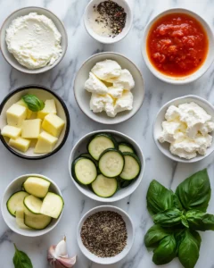 To make these zucchini rolls, you’ll need a short list of simple, easy-to-find ingredients. Each component plays a key role in flavor and texture.