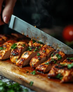 Once the chicken is fully cooked and golden on both sides, transfer it to a cutting board. Let it rest for 3–5 minutes before slicing. Resting allows the juices to redistribute throughout the meat, keeping it moist and tender. After resting, slice the chicken into thin strips against the grain. This technique shortens the muscle fibers, making each bite softer and more enjoyable.