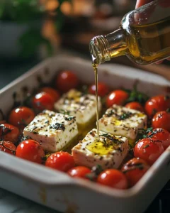 • Bake for 30–35 minutes until tomatoes burst and feta softens.