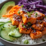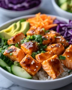 Another reason these bowls are so popular is their balance. You get protein from the salmon, comfort from the rice, freshness from crisp vegetables, and indulgence from the sauce—all in one dish. It feels nourishing and exciting at the same time, which is exactly what keeps people craving it.
