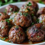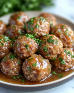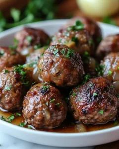 Leftovers from this dish reheat very well and often taste just as good—or even better—the next day. The easiest method is to reheat them in the microwave over medium power, stirring occasionally to ensure even heating. If you prefer, you can also reheat on the stovetop in a saucepan over low heat. Add a splash of beef broth, water, or a little extra sauce if it has thickened too much during storage. Covering the pan while reheating helps retain moisture and prevents the meatballs from drying out. This makes it a perfect make-ahead meal for busy nights, and it’s just as comforting as when freshly cooked.