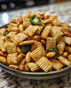 The idea for this spicy twist comes from countless family gatherings where traditional Chex Mix was always a hit, but adding a kick of jalapeño flavor elevated the experience. It’s the ultimate snack for those who love a combination of heat, crunch, and a hint of savory goodness. Whether you’re sharing it with friends, packing it for road trips, or simply indulging yourself while binge-watching your favorite show, this mix will quickly become a go-to favorite.