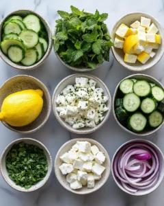This salad is more than just a side dish—it’s a refreshing experience. The crunch of cucumbers, the salty creaminess of feta, and the bright citrus dressing create a balance that feels both light and satisfying.