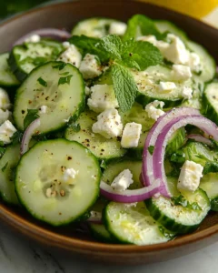 A refreshing and vibrant salad made with crisp cucumbers, creamy feta, and a zesty lemon dressing—perfect for light meals or as a flavorful side dish.