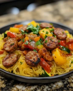 Yes! This recipe is perfect for meal prep or advance cooking. You can roast the squash and cook the sausage a day or two ahead of time. Store each component separately in airtight containers in the refrigerator to preserve flavor and texture. When ready to serve, combine the squash, sausage, and sautéed vegetables in a skillet and warm gently over low heat. This method ensures the flavors meld beautifully while keeping the squash strands intact. Preparing in advance makes weeknight dinners quicker and stress-free, while still delivering a fresh, homemade taste.