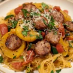 Many families are looking for meals that satisfy kids and adults alike. This Autumn Sausage Pasta Squash hits the mark because it combines familiar flavors with a fun twist on pasta. The sweet roasted squash, tender sausage, and lightly spiced veggies make it appealing to picky eaters while still satisfying adults who crave flavor depth.