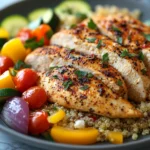 This recipe was inspired by the simplicity of Mediterranean-style cooking, where fresh ingredients and bold flavors shine without complicated techniques. The combination of tender baked chicken, creamy feta, fluffy quinoa, and roasted vegetables creates a harmony of textures and tastes that feels both rustic and modern. Once you make it, it may quickly become one of your most reliable go-to dinners.