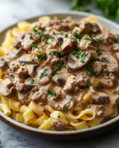 Whether you’re cooking for a family gathering, a casual dinner, or just craving something indulgent, this recipe will deliver creamy, savory comfort in every bite. Let’s dive into this quick, flavorful, and easy-to-make stroganoff that will quickly become a weeknight favorite.