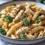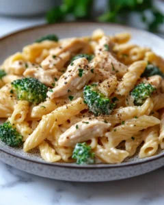 Rotisserie chicken saves time while adding deep, roasted flavor. A light cream-based sauce, enhanced with garlic, herbs, and a touch of cheese, coats every strand of pasta beautifully. Whether you’re feeding picky eaters or hungry adults, this pasta checks all the boxes for flavor, texture, and satisfaction.