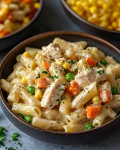 The idea came from blending the creamy filling of a traditional pot pie with the ease and familiarity of pasta. By cooking everything in one pan, the dish captures all the savory goodness while keeping preparation simple and approachable. It is the kind of meal that feels nostalgic yet modern, perfect for family dinners, casual gatherings, or anytime you crave comfort food made easy.