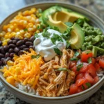 What truly makes this dish special is how it brings everyone to the table with excitement. Each person can build their own bowl, layering rice, tender shredded chicken, creamy toppings, and fresh garnishes to create something uniquely theirs. It turns an ordinary weeknight meal into a customizable experience.