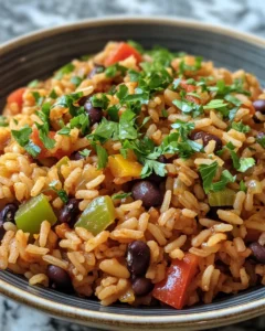 This recipe succeeds because it balances texture, seasoning, and technique. The rice is lightly toasted before simmering, which adds a subtle nutty depth and keeps the grains separate. The beans are gently folded in near the end, allowing them to absorb flavor without breaking apart. A carefully chosen blend of spices brings warmth and color without overwhelming the dish.