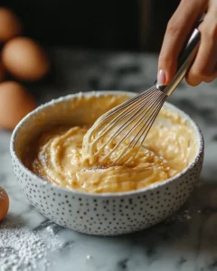 Mix in the baking powder and rest the batter for 2–3 minutes.