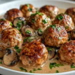 The meatballs are tender and juicy, thanks to the right balance of breadcrumbs and seasoning. The creamy mushroom sauce adds depth and richness, making every bite satisfying without being overwhelming. It’s also highly adaptable—you can pair it with your favorite sides or adjust the seasoning to suit your taste.
