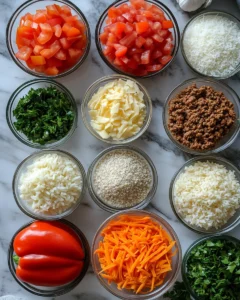 Here’s everything required to create these delicious stuffed peppers. Measurements are included for accuracy and consistency.