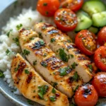 Yes, the tomato salad is very flexible. You can add diced red onion for sharpness, sliced olives for a savory note, or avocado for creaminess. Fresh herbs like basil, parsley, or dill all work beautifully. If you enjoy a bit of sweetness, a small drizzle of honey-free balsamic-style reduction can add depth without overpowering the clean flavors. The goal is to keep the salad fresh and light so it complements the chicken and rice rather than competing with it.