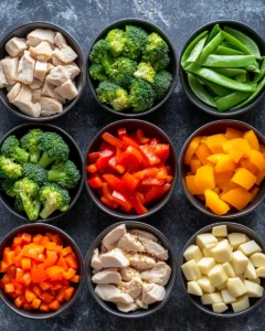 Mix well and allow the chicken to marinate for 10–15 minutes while you prepare the vegetables.