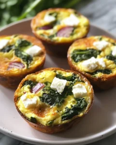 Inspired by Mediterranean flavors and the practicality of batch cooking, these egg muffins strike the perfect balance between wholesome and satisfying. Tender eggs, vibrant spinach, and tangy feta come together in a handheld format that feels both light and indulgent. Ideal for meal prep, brunch spreads, or even a quick afternoon bite, this recipe proves that healthy eating can be delicious, flexible, and stress-free.