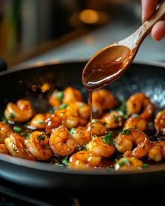 Pour the teriyaki sauce into the pan with the shrimp. Let it simmer for 2–3 minutes until it thickens and coats the shrimp beautifully.