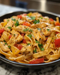 This creamy, flavorful pasta dish brings together tender chicken, bold Cajun spices, and a rich Parmesan-based sauce. Perfect for a cozy weeknight dinner or a casual family gathering, it delivers restaurant-quality flavors right at home. The combination of sautéed bell peppers, onions, and a velvety sauce makes every bite satisfying and comforting, with just the right amount of spice.