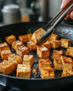 Sticking usually comes from two things: not enough heat or not enough oil at the start. Begin with a well-heated skillet over medium-high heat and use 2 tbsp avocado oil (or another neutral oil) for the tofu step. Once the tofu hits the pan, leave it alone for a minute or two—if you try to flip too early, it clings. Using 1 tbsp cornstarch in the coating also helps form a dry surface that browns more easily. If you’re using stainless steel, make sure it’s fully preheated; a nonstick skillet also works well and reduces stress. Finally, don’t overcrowd: tofu needs space so steam doesn’t build up and soften the edges. If your skillet is small, cook the tofu in two batches for the best golden crust.