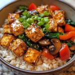 There’s a certain kind of comfort food that doesn’t feel heavy—warm, savory, and deeply satisfying, but still bright enough to leave you feeling energized afterward. This is the kind of bowl I crave on a chilly weeknight when I want dinner to feel cozy, yet wholesome: tender mushrooms, crisp-edged tofu, and a glossy, umami-rich stir-fry sauce spooned over a fluffy base.