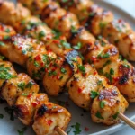 Grill Method: Preheat your grill to medium-high heat and lightly oil the grates. Place the skewers on the grill and cook for 10–12 minutes, turning every few minutes to prevent burning. The chicken should develop light char marks while remaining juicy inside.