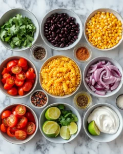 This recipe is more than just a side dish. It is a complete, well-rounded meal that brings together plant-based protein, fiber-rich vegetables, and satisfying pasta. Black beans add depth and heartiness, while sweet corn offers a pop of natural sweetness. The lime Greek yogurt dressing ties everything together with a creamy yet light finish that never feels heavy.