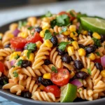 A vibrant, creamy pasta salad featuring black beans, sweet corn, fresh vegetables, and a tangy lime Greek yogurt dressing. Perfect for make-ahead meals, gatherings, or a refreshing lunch.