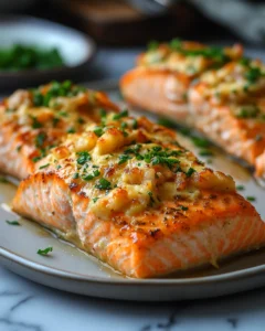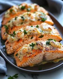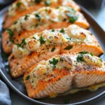 Irresistible Crab and Shrimp Stuffed Salmon is more than just a recipe; it’s an experience meant to be shared. From the moment you begin prepping the ingredients to the final bite at the table, this dish invites you to slow down and enjoy the process of cooking for someone special. The combination of tender salmon with a creamy, seafood-rich filling creates a harmony that feels indulgent yet comforting, making it ideal addictive.