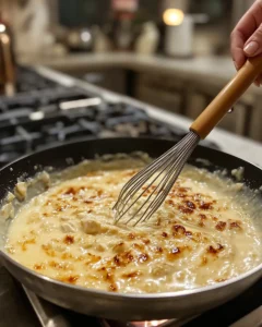 The key is balance and temperature control. Use the recommended amount of flour and avoid boiling the broth aggressively after adding cream. A gentle simmer allows the broth to thicken just enough while staying smooth. If it becomes too thick, add a splash of warm chicken broth to loosen it to your desired consistency.