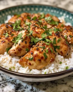 Basmati rice plays a crucial supporting role. Its long, aromatic grains stay light and fluffy, creating the perfect base for the rich glaze. Instead of competing with the chicken, the rice absorbs the sauce and rounds out each bite. This harmony makes the dish feel indulgent yet approachable, bold yet comforting.