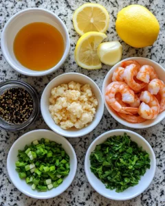 In a bowl, whisk together honey, soy sauce, lemon juice, garlic, and ginger. Add shrimp and marinate for 15–20 minutes.