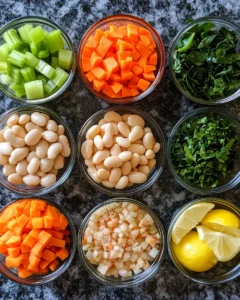 Several varieties of white beans work beautifully in this recipe. Cannellini beans are one of the best options because they have a creamy interior and hold their shape well in soups. Great Northern beans are slightly smaller and have a mild flavor that blends nicely with herbs and spices. Navy beans are also excellent if you prefer a softer texture that blends easily for a creamier soup. Ultimately, any white bean variety will work, so you can choose based on what you have available in your pantry.