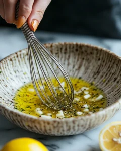In a small bowl, whisk together lemon juice, lemon zest, olive oil, garlic, salt, and black pepper.