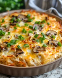 The Irresistible Mushroom & Swiss Hashbrown Bake is a testament to how simple ingredients can come together to create something extraordinary. Whether you’re hosting a brunch, preparing a comforting family dinner, or contributing to a potluck, this casserole fits every moment beautifully.