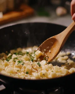 In the same skillet, add 1 tablespoon olive oil. Sauté the diced onion for 3–4 minutes until softened. Stir in grated ginger and cook for 1 minute.
