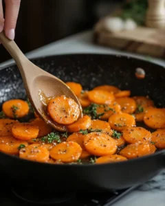 Cook uncovered for 10–12 minutes, stirring occasionally. As the carrots cook, the liquid will reduce and thicken into a glossy glaze. The carrots should be tender yet still hold their shape. Once the glaze coats the carrots evenly and the liquid has mostly evaporated, remove from heat. Serve warm alongside the roast beef and mashed potatoes for a perfectly balanced plate.
