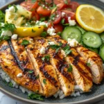 A vibrant Mediterranean-inspired meal featuring juicy grilled chicken marinated with lemon, garlic, olive oil, and herbs. Perfect for family dinners, outdoor grilling, or healthy meal prep.