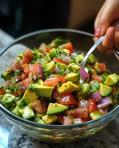 Mix carefully to avoid mashing the avocado too much—you want a chunky, fresh texture. Taste and adjust seasoning if needed.