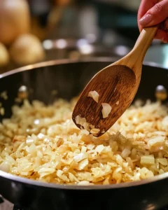 Heat olive oil in a large pot over medium heat. Cook diced onion for 4–5 minutes until softened.