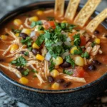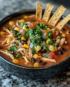 A comforting and flavorful soup made with tender shredded chicken, vegetables, spices, and crispy tortilla strips. Perfect for cozy dinners and easy weeknight meals.
