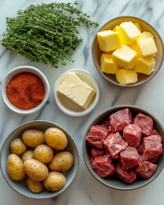 Baby potatoes are ideal because they hold their shape well during slow cooking. Yukon Gold potatoes are another excellent choice because of their creamy texture and slightly buttery flavor. Red potatoes also work well since they remain firm and absorb flavors without falling apart. If you only have large potatoes, simply cut them into evenly sized chunks so they cook at the same rate as the beef. Avoid overly starchy potatoes like russets if possible, as they can become too soft and break apart during long cooking times.