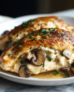 A juicy, flavorful chicken dish perfect for weeknight dinners or special occasions. This recipe features tender chicken breasts stuffed with a savory mushroom and cheese filling, baked to golden perfection for a meal that’s both comforting and impressive.